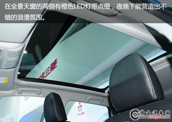 在全景天窗的两侧有橙色LED灯带点缀,夜晚下能营造出不错的浪漫氛围。