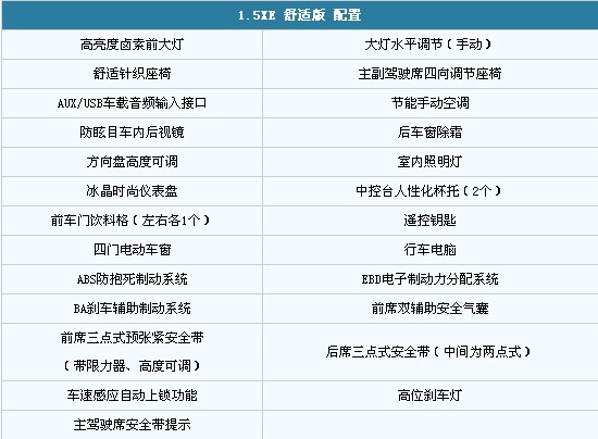 ● 2014款 1.5XE CVT 舒适版:8.98万