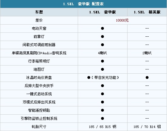 ● 2014款 1.5XL CVT 豪华版:10.28万