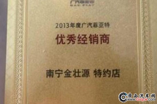 庆祝广西金壮源店荣获2013年广汽菲亚特全国优秀经销商,即日起到梧州金壮源购菲翔综合优惠10000元,欢迎到店鉴赏。