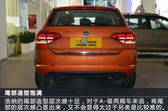 上海大众—桑塔纳·浩纳在2015上海车展上首次亮相的时候,就被网友戏称为“小朗行”。对于“套娃脸鼻祖”的大众来说,旗下每款车型的前脸都是有着70%-80%的相似度,而作为两厢版车型的桑塔纳·浩纳来说,又与大哥朗行有着非常相似的设计。这样的设计无疑是拔高了这种入门级车的逼格。