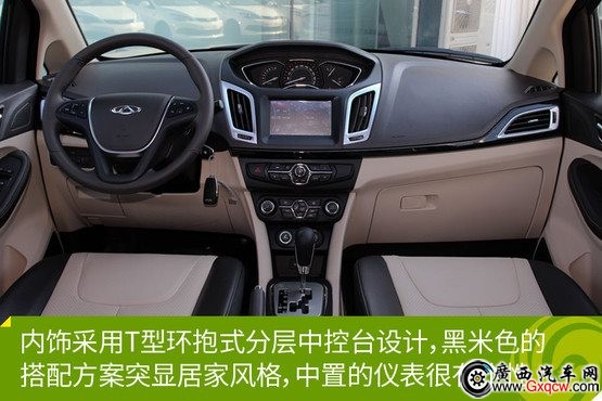 内饰设计上,艾瑞泽M7采用了T型环抱式分层中控台设计,并采用了黑色嵌米色搭配。操控台上的功能布局、空调出风口的设计,以及方向盘、排挡的样式,都与艾瑞泽系列家族的设计保持一致。