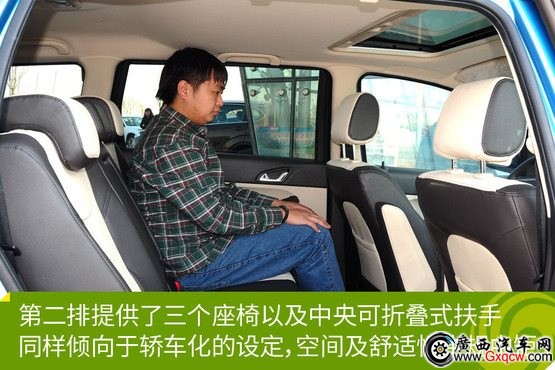 艾瑞泽M7车内的七个座位采用了2+3+2式的座椅布局,并且能够通过灵活的座椅布局,分别获得588-1342-2240升的储物空间。