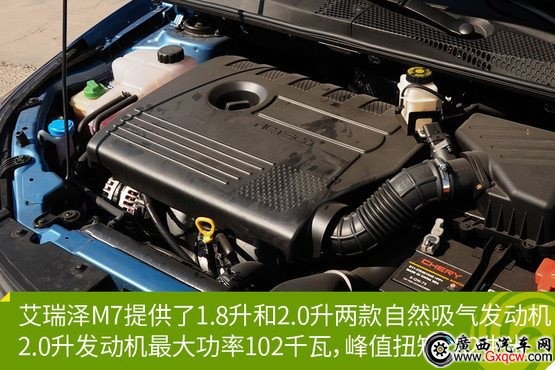 动力方面,艾瑞泽M7提供1.8升和2.0升两款发动机,其中1.8升车型匹配手动变速器,最大功率97千瓦、最大扭矩170牛米。而2.0升车型匹配CVT无级变速器,最大功率是102千瓦,最大扭矩182牛米。