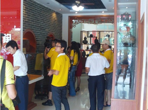 登峰泥兴陶瓷店的负责人热情招待我们