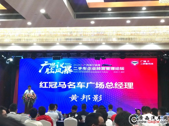 论坛开始后,先由红冠马名车总经理黄邦影、广隆二手车市场总经理吴炳锋、车脑学院创始人何展做主题演讲,分别从不同角度分享了对二手车行业的思考和见解。