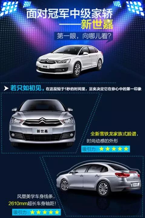 面对冠军中级家轿——新世嘉,你的**眼,看向哪儿?一张图由外向内为你揭示家轿冠军新世嘉的无限魅力,让你无论是只如初见还是早有耳闻都望眼欲穿!