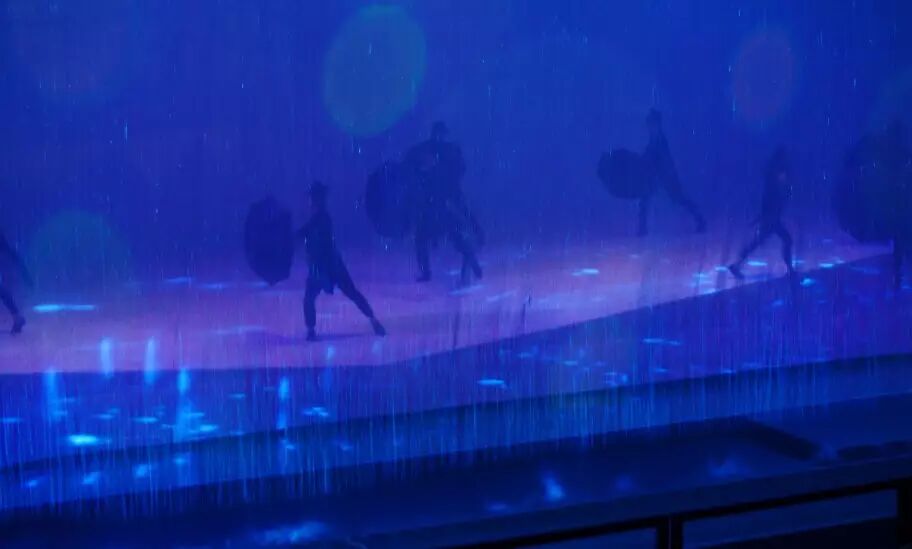 一段精彩的雨伞舞蹈,将法式浪漫表现得酣畅淋漓。红衣女子曼妙的舞姿,让大家如痴如醉。