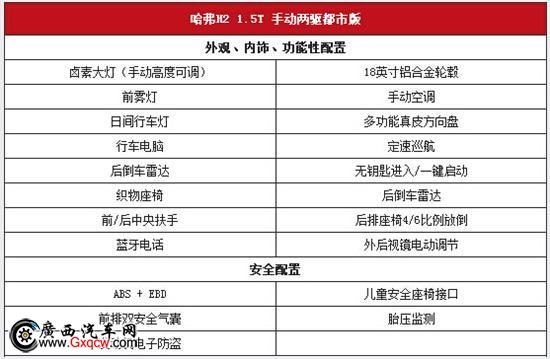 娱乐配置方面,哈弗H2精英型比都市版增加了GPS导航和倒车影像,尊贵版与精英版为了进一步提升音响效果,在四低音扬声器基础上多了两个高音。