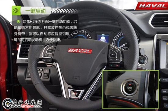 在舒适配置方面,哈弗H2的三个版本都不低。蓝牙免提通话系统、定速巡航、真皮多功能方向盘、换挡提示器、行车电脑、前后排中央扶手、后排座椅按比例放倒等功能一个都不少。差价五千的低配都市版要比精英型少了真皮座椅和电加热,高配车型则在此基础上增加了六向电动调节,并带有腰部支撑功能,还是非常划算的。而哈弗H2标配的一键启动功能则让其又上升了一个档次。