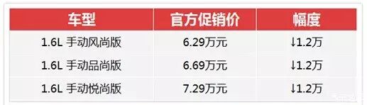 这次促销优惠主要针对3款手动挡车型,这也是性价比*高的3款车型。其中原价7.49万元的1.6升手动风尚型的促销价格仅为6.29万元,原价7.89万元的1.6升手动品尚型的促销价格仅为6.69万元,原价8.49万元的1.6升手动悦尚型的促销价格仅为7.29万元。