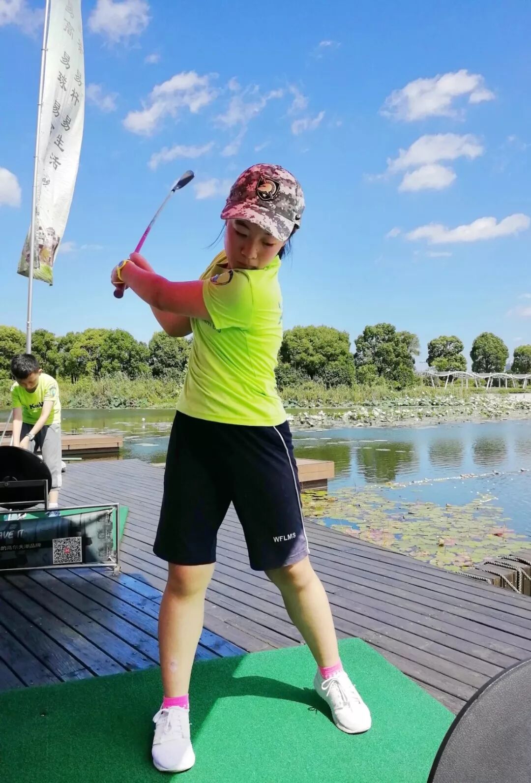 一边眺望水利博物塔一边挥杆,体验高大上的水上高尔夫