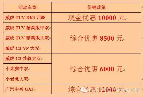 凡是在活动期间,在我公司购买车辆的,除了能享受以上优惠政策及礼品外,还可获赠价值500元维修保养券;