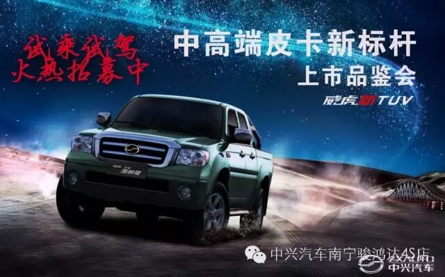 中兴威虎TUV-澳洲版试驾会将于明日下午13:30在北湖路尾园艺路园艺试驾场举行,欢迎各位新老客户及各位小伙伴们来约!