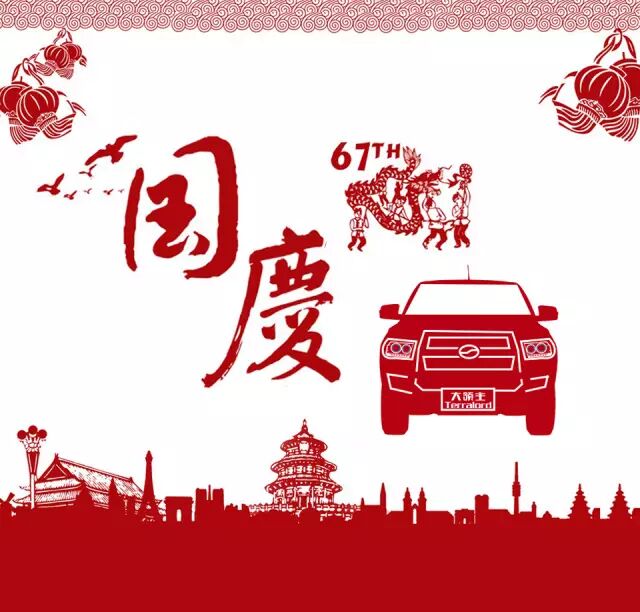 金秋十月好心情,举国欢腾庆国庆,伟大的祖国迎来了67岁生日,中兴汽车也迎来了,从1986年发明中国**辆皮卡到2016年再次发明高端皮卡的30周年。在此,中兴汽车祝福伟大祖国国泰民安,繁荣昌盛,祝广大车友生活幸福,假期愉快!