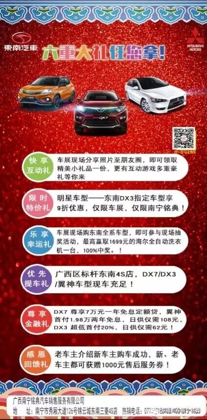 2月18日,2017东南双侠——DX7&DX3百城万台交车仪式暨广西区域销量破万庆典将在华南城4号广场火热上演。