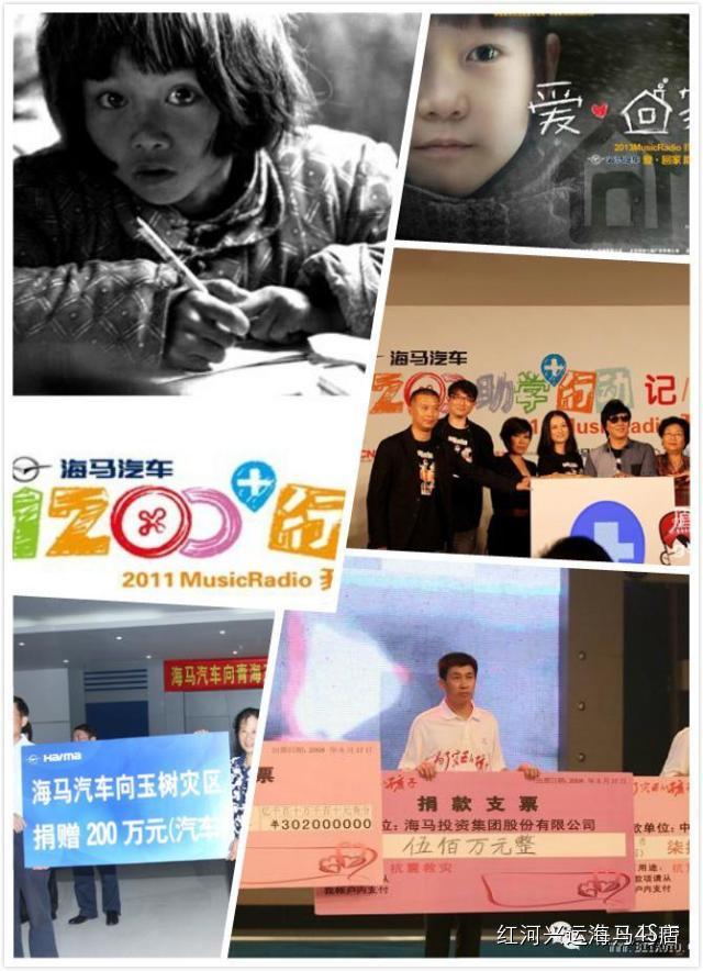 “脚踏实地、感恩惜福”是海马立业之本,截至到现在,海马在抗震救灾、扶贫济困、捐资助学和公共事业等慈善公益事业方面,累计捐款捐物逾3亿元,有爱有担当,敢花舍得花!
