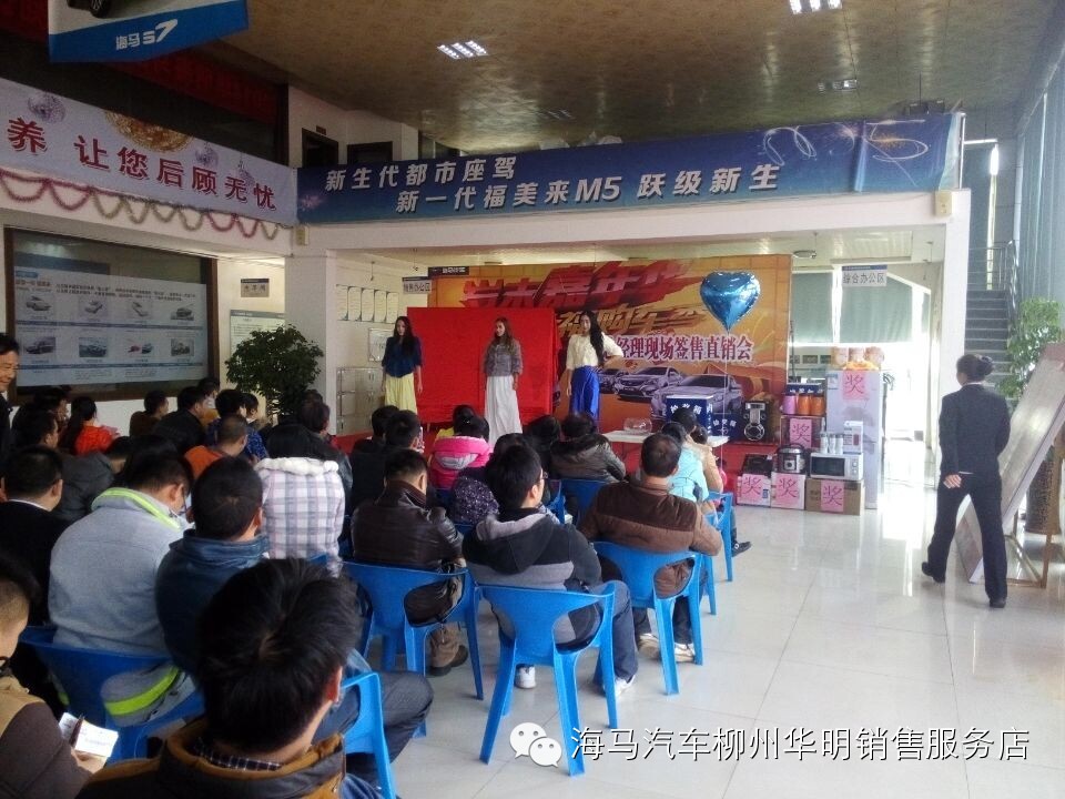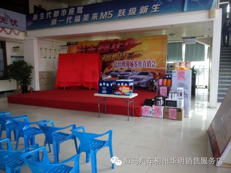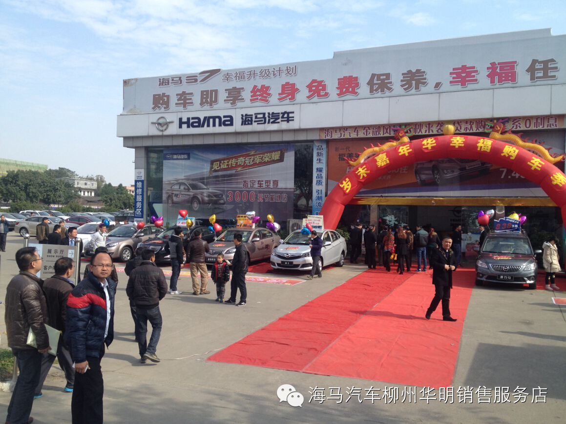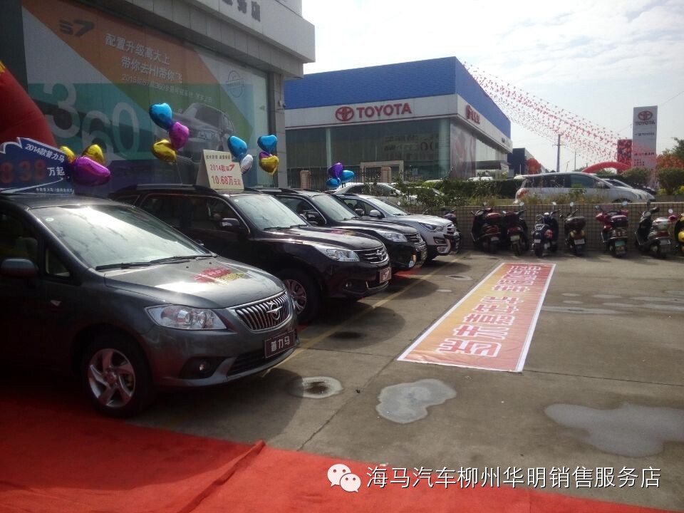 2014年12月13日,柳州华明海马汽车销售服务店举办“岁末嘉年华,幸福购车季”大型团购活动。我们早早的把车子擦亮排列在展厅前,期待着广大顾客的到来。