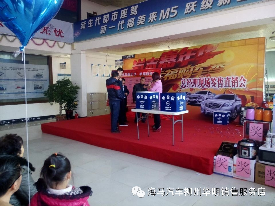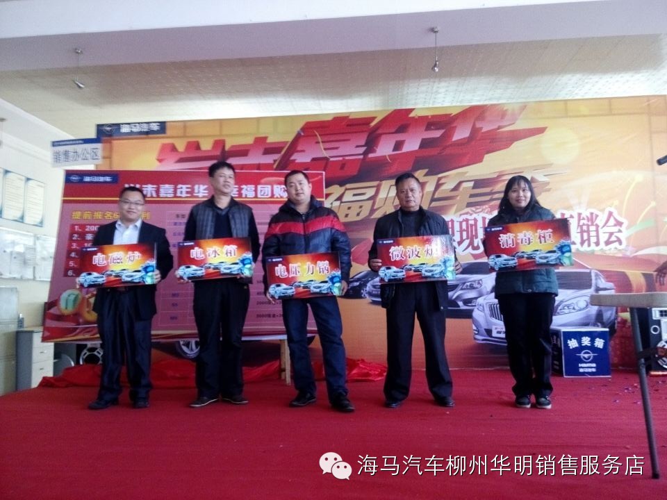 现场获奖客户我就不一一列举了,当天我们送出22台豪华家电,成交客户22批。还有很多客户因为当天有事未到,错了这次活动。海马华明店全体员工一直在这恭候您的光临,我们承诺会给您一辆最适合您的车、**的售后服务、最实惠的价格、最专业的技术服务。
