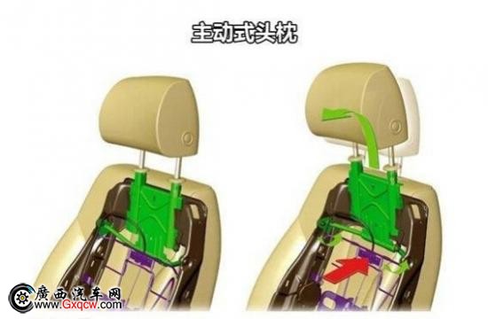 碰撞主动保护机制安置在坐椅里面, 当受到激活, 座椅中的机械装置会使头枕向上移,从而保护人的头颈。