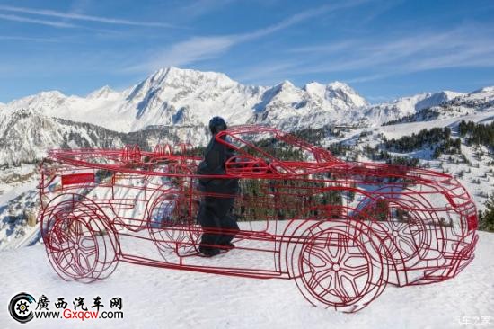 这 件艺术装置作品融合了以1:1比例打造的揽胜极光敞篷版艺术线框车,造型别致,与Courchevel白雪皑皑的山间美景交相辉映。被安置于驾驶席的大猩 猩雕塑是Orlinski的代表作之一。作品构思传递了这位艺术家一贯倡导的“Born Wild”理念,旨在呼吁人们保持积极的人生态度,并学会克制自己,用文明的方式表达情绪。这一设计主题完美体现了揽胜极光的核心价值——兼具强悍的越野 能力与卓越的城市驾驶体验。
