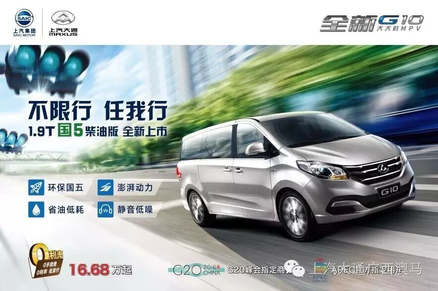 推出首台国5柴油版MPV的为什么是上汽大通呢?因为上汽大通在动力系统领域极具经验,有深厚的技术储备,早在政策出台一年半前,就推出了国内首款国5柴油欧系轻客车型,V80销量在整个宽体轻客行业国5车型中位列**,市场份额达到76%。不仅国内市场销量出色,海外市场也突飞猛进。上汽大通“欧洲战略”不断深入发展,英国3000台车完成交付,在爱尔兰总计交付了300多台车;在澳大利亚销量位列中国品牌**,在新西兰成为轻型商用车细分市场第二,市占率今年预计达15%。继V80后,推出的1.9T柴油版国5车型,将进一步完成技术上的创新。目前,上汽大通不仅成为9·3大阅兵指挥用车,还先后成为APEC峰会、青奥会、G20峰会等一系列世界高端赛会的官方指定用车,展现出上汽大通作为行业领军者的实力与风采。