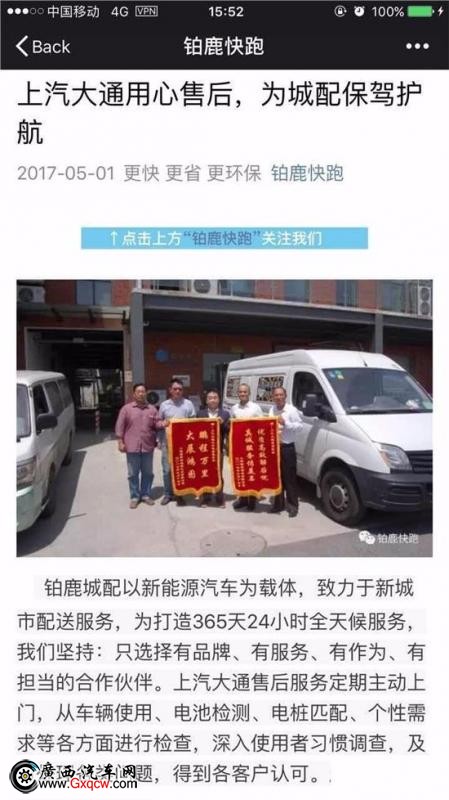 经过几天迎着朝霞,披着晚霞,上汽大通售后服务人员专业和周到的工作迎来了客户的满意和欢送。贴心周到的服务赢得了客户的信赖和赞扬,上海铂鹿物流有限公司还特地在自己公司微信公众号对上汽大通的贴心服务表达了表扬和感激。上汽大通主动上门“贴心到家”就像是五月甜甜地风吹到了每一个客户的心里。发自内心深处的表白:有这样的售后服务的保障,今后发展的需求,首选就是上汽大通。