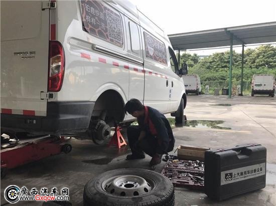 雨水绵绵,气温回落。维修技师们根据物流行业的特点,对车辆各系统进行了细致地检查,在检查中发现制动片的磨损等问题,服务顾问记录下故障情况,在现场为客户做好进厂维修的预约。