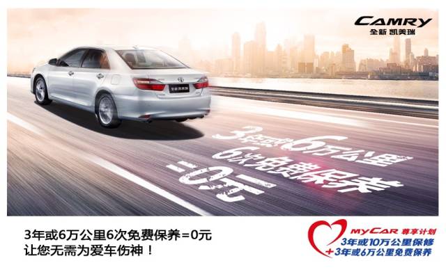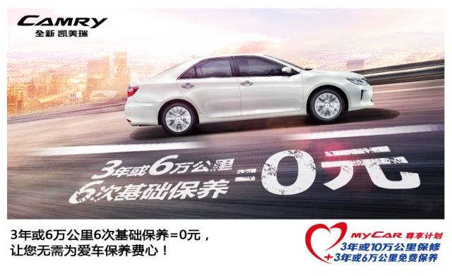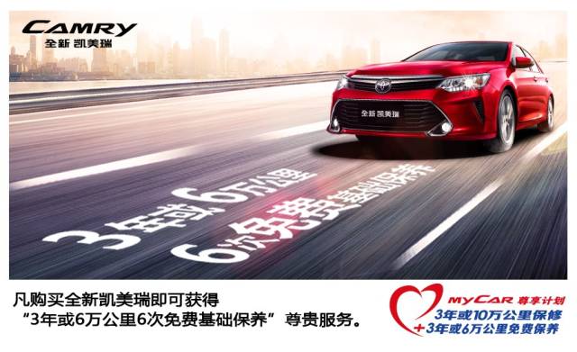 广汽丰田为全新凯美瑞车主的爱车提供“3年或6万公里6次免费保养”尊贵服务,让您无后顾之忧