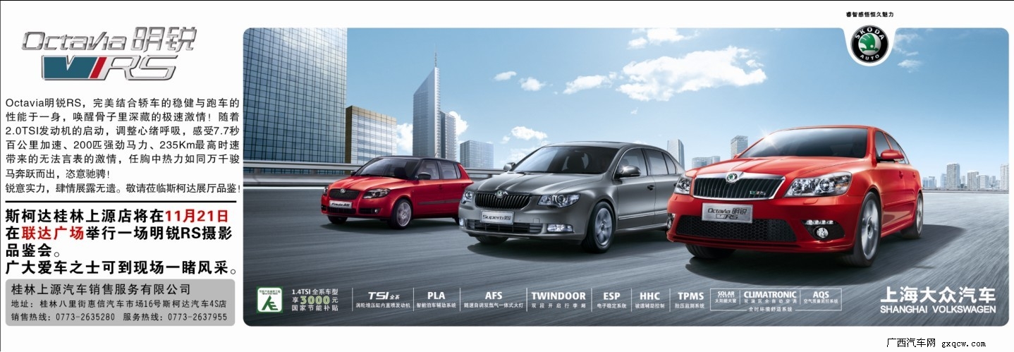 (上海大众斯柯达桂林4S店)上海大众斯柯达品牌汽车、汽车零配件、汽车用品的销售及售后服务,二手车交易等。